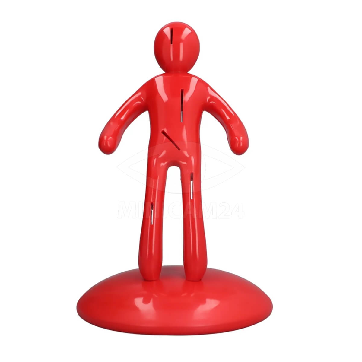 Конструкция подставки включает разделители, что обеспечивает безопасность и удобство использования. Каждый нож располагается в своем отсеке, что предотвращает их контакт друг с другом и снижает риск повреждения лезвий. Уникальный дизайн в форме человека с ножами делает подставку не только функциональной, но и стильным декоративным элементом.